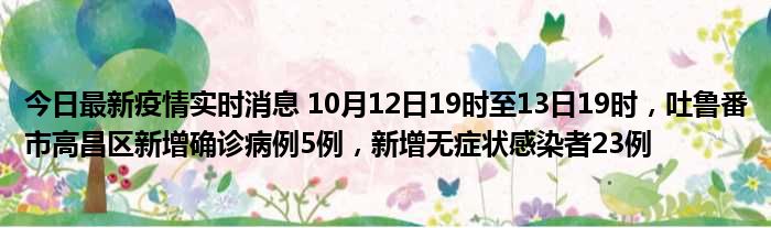 今日最新疫情实时消息 10月12日19时至13日19时,吐鲁番市高昌区新增确诊病例5例,新增无症状感染者23例