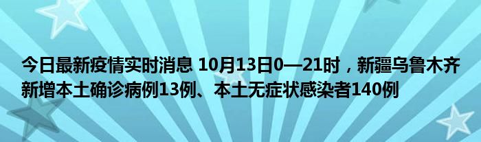今日最新疫情实时消息 10月13日0—21时,新疆乌鲁木齐新增本土确诊病例13例、本土无症状感染者140例
