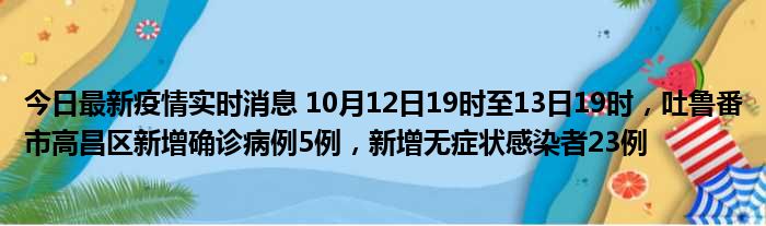 今日最新疫情实时消息 10月12日19时至13日19时,吐鲁番市高昌区新增确诊病例5例,新增无症状感染者23例