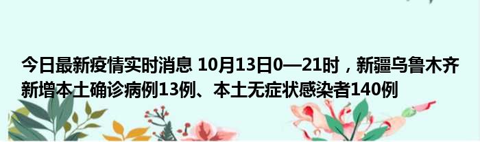 今日最新疫情实时消息 10月13日0—21时,新疆乌鲁木齐新增本土确诊病例13例、本土无症状感染者140例