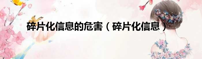 大家好,今天小六子来为大家解答以下的问题,关于碎片化信息的危害,碎片化信息这个很多人还不知道,现在让我们一起来看看吧!