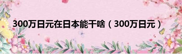 大家好,今天小六子来为大家解答以下的问题,关于300万日元在日本能干啥,300万日元这个很多人还不知道,现在让我们一起来看看吧!