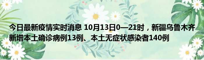 今日最新疫情实时消息 10月13日0—21时,新疆乌鲁木齐新增本土确诊病例13例、本土无症状感染者140例