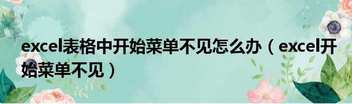 导读 大家好,今天小六子来为大家解答以下的问题,关于excel表格中开始菜单不见怎么办,excel开始菜单不见这个很多人还不知道,现在让我们一起来
