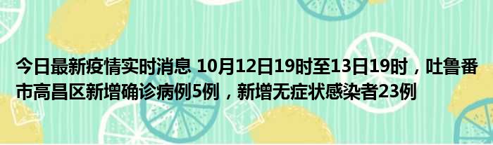 今日最新疫情实时消息 10月12日19时至13日19时,吐鲁番市高昌区新增确诊病例5例,新增无症状感染者23例
