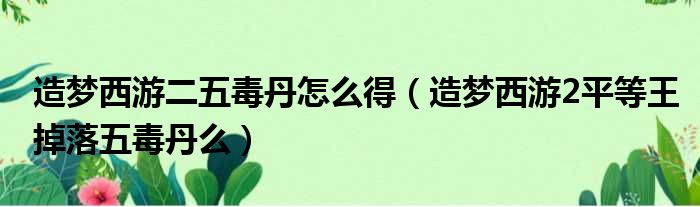 大家好,今天小六子来为大家解答以下的问题,关于造梦西游二五毒丹怎么得,造梦西游2平等王掉落五毒丹么这个很多人还不知道,现在让我们一起来看看吧!