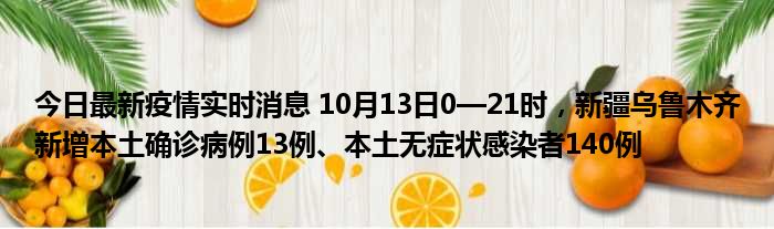今日最新疫情实时消息 10月13日0—21时,新疆乌鲁木齐新增本土确诊病例13例、本土无症状感染者140例