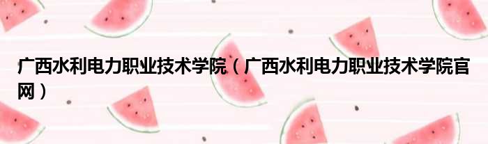 广西水利电力职业技术学院(广西水利电力职业技术学院官网)