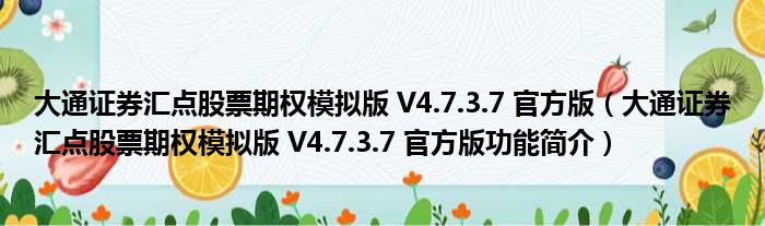 大通证券汇点股票期权模拟版 V4.7.3.7 官方版(大通证券汇点股票期权模拟版 V4.7.3.7 官方版功能简介)