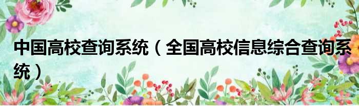 导读 大家好,今天小六子来为大家解答以下的问题,关于中国高校查询系统,全国高校信息综合查询系统这个很多人还不知道,现在让我们一起来看看吧