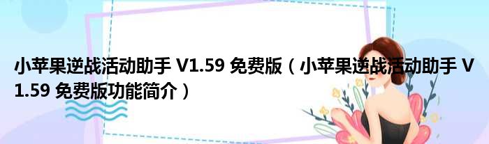 小苹果逆战活动助手 V1.59 免费版(小苹果逆战活动助手 V1.59 免费版功能简介)