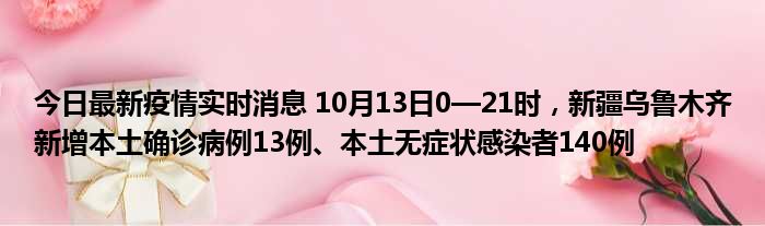 今日最新疫情实时消息 10月13日0—21时,新疆乌鲁木齐新增本土确诊病例13例、本土无症状感染者140例