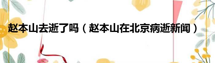 赵本山去逝了吗(赵本山在北京病逝新闻)