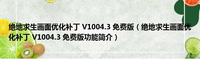 绝地求生画面优化补丁 V1004.3 免费版(绝地求生画面优化补丁 V1004.3 免费版功能简介)