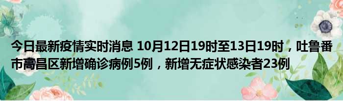 今日最新疫情实时消息 10月12日19时至13日19时,吐鲁番市高昌区新增确诊病例5例,新增无症状感染者23例