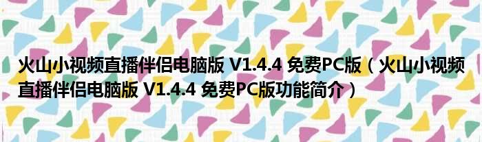 火山小视频直播伴侣电脑版 V1.4.4 免费PC版(火山小视频直播伴侣电脑版 V1.4.4 免费PC版功能简介)