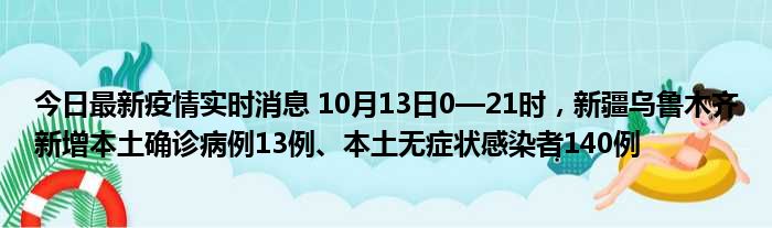今日最新疫情实时消息 10月13日0—21时,新疆乌鲁木齐新增本土确诊病例13例、本土无症状感染者140例