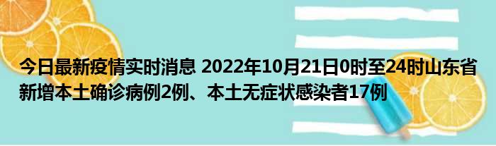 您的位置:首页 >房产频道 > 综合精选 > 今日最新疫情实时消息 2022年10月21日0时至24时山东省新增本土确诊病例2例、本土无症状感染者17例 2022-10-22 18:20:05 • 来源: 导读 免责声明:本文由用户上传,如有侵权请联系删除! 上一篇:今日最新疫情实时消息 河南10月21日新增本土确诊病例13例、本土无症状感染者14例 下一篇:今日最新疫情实时消息 2022年10月21日0时至24时山东省新增本土确诊病例2例、本土无症状感染者17例