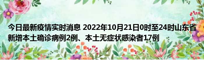 您的位置:首页 >房产频道 > 综合精选 > 今日最新疫情实时消息 2022年10月21日0时至24时山东省新增本土确诊病例2例、本土无症状感染者17例 2022-10-22 19:10:14 • 来源: 导读 免责声明:本文由用户上传,如有侵权请联系删除! 上一篇:今日最新疫情实时消息 2022年10月21日0时至24时山东省新增本土确诊病例2例、本土无症状感染者17例 下一篇:黑子的篮球第四季什么时候出来(黑子的篮球第四季)
