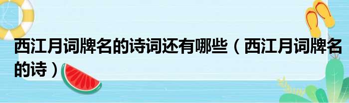 西江月词牌名的诗词还有哪些(西江月词牌名的诗)
