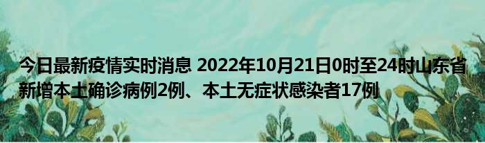 您的位置:首页 >房产频道 > 综合精选 > 今日最新疫情实时消息 2022年10月21日0时至24时山东省新增本土确诊病例2例、本土无症状感染者17例 2022-10-22 21:40:11 • 来源: 导读 免责声明:本文由用户上传,如有侵权请联系删除! 上一篇:今日最新疫情实时消息 2022年10月21日0时至24时山东省新增本土确诊病例2例、本土无症状感染者17例 下一篇:多单是什么意思解释(多单是什么意思)