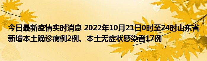 您的位置:首页 >房产频道 > 综合精选 > 今日最新疫情实时消息 2022年10月21日0时至24时山东省新增本土确诊病例2例、本土无症状感染者17例 2022-10-22 22:30:05 • 来源: 导读 免责声明:本文由用户上传,如有侵权请联系删除! 上一篇:商编查询hscode(商编查询63079) 下一篇:今日最新疫情实时消息 2022年10月21日0时至24时山东省新增本土确诊病例2例、本土无症状感染者17例