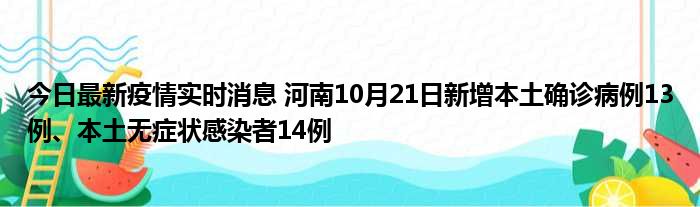 今日最新疫情实时消息 河南10月21日新增本土确诊病例13例、本土无症状感染者14例