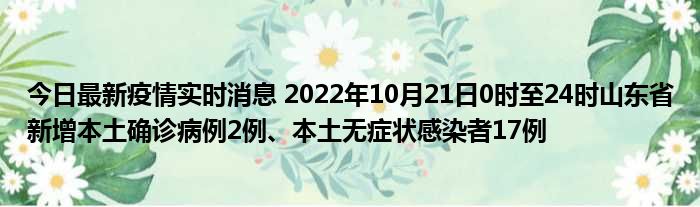 您的位置:首页 >房产频道 > 综合精选 > 今日最新疫情实时消息 2022年10月21日0时至24时山东省新增本土确诊病例2例、本土无症状感染者17例 2022-10-23 00:10:13 • 来源: 导读 免责声明:本文由用户上传,如有侵权请联系删除! 上一篇:今日最新疫情实时消息 2022年10月21日0时至24时山东省新增本土确诊病例2例、本土无症状感染者17例 下一篇:962223是什么电话(96222)