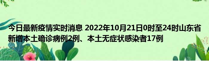 您的位置:首页 >房产频道 > 综合精选 > 今日最新疫情实时消息 2022年10月21日0时至24时山东省新增本土确诊病例2例、本土无症状感染者17例 2022-10-23 03:30:12 • 来源: 导读 免责声明:本文由用户上传,如有侵权请联系删除! 上一篇:今日最新疫情实时消息 2022年10月21日0时至24时山东省新增本土确诊病例2例、本土无症状感染者17例 下一篇:笑傲江湖2东方不败国语免费观看逸凡