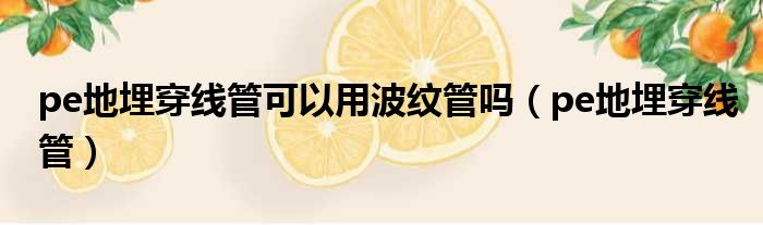 pe地埋穿线管可以用波纹管吗(pe地埋穿线管)