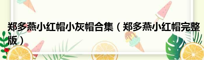 郑多燕小红帽小灰帽合集(郑多燕小红帽完整版)