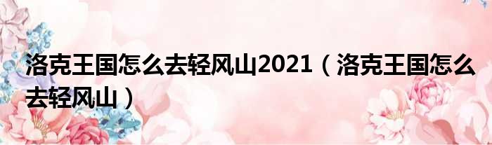 导读 大家好,今天小六子来为大家解答以下的问题,关于洛克王国怎么去轻风山2021,洛克王国怎么去轻风山这个很多人还不知道,现在让我们一起来看