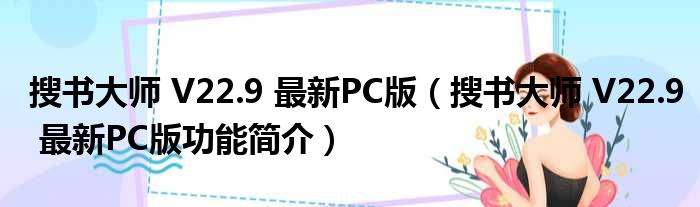搜书大师 V22.9 最新PC版(搜书大师 V22.9 最新PC版功能简介)