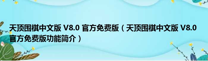 天顶围棋中文版 V8.0 官方免费版(天顶围棋中文版 V8.0 官方免费版功能简介)