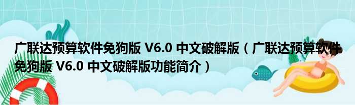 广联达预算软件免狗版 V6.0 中文破解版(广联达预算软件免狗版 V6.0 中文破解版功能简介)