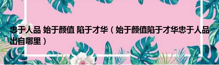 忠于人品 始于颜值 陷于才华(始于颜值陷于才华忠于人品出自哪里)