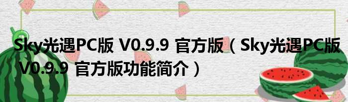Sky光遇PC版 V0.9.9 官方版(Sky光遇PC版 V0.9.9 官方版功能简介)
