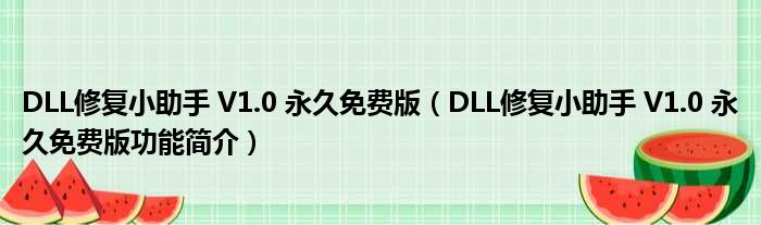 DLL修复小助手 V1.0 永久免费版(DLL修复小助手 V1.0 永久免费版功能简介)