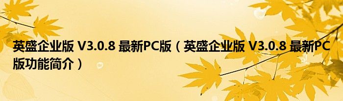 导读 大家好,关于英盛企业版 V3 0 8 最新PC版,英盛企业版 V3 0 8 最新PC版功能简介这个很多人还不知道,小勒来为大家解答以上的问题,现在让