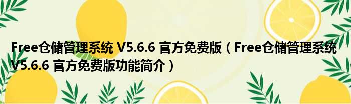 Free仓储管理系统 V5.6.6 官方免费版(Free仓储管理系统 V5.6.6 官方免费版功能简介)