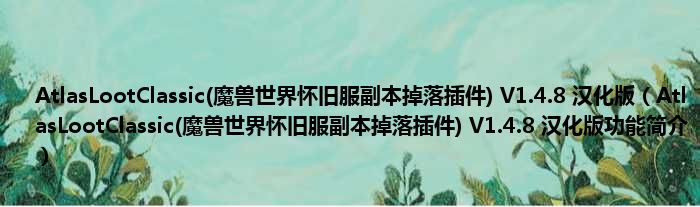 AtlasLootClassic(魔兽世界怀旧服副本掉落插件) V1.4.8 汉化版(AtlasLootClassic(魔兽世界怀旧服副本掉落插件) V1.4.8 汉化版功能简介)