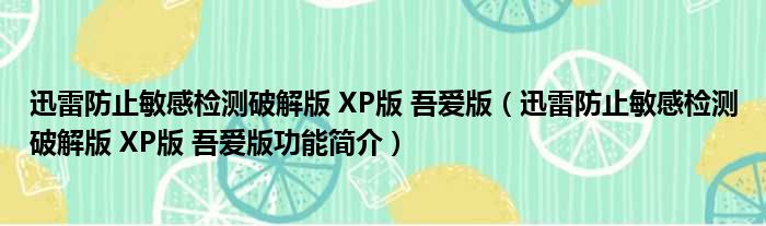 迅雷防止敏感检测破解版 XP版 吾爱版(迅雷防止敏感检测破解版 XP版 吾爱版功能简介)