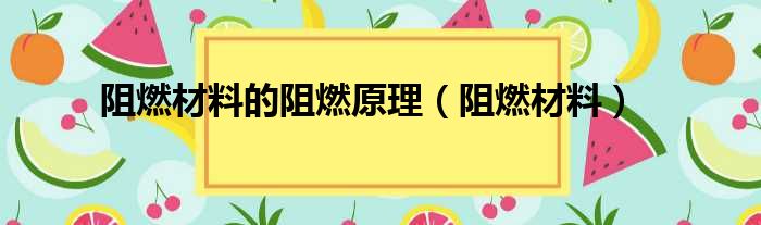 大家好,今天小六子来为大家解答以下的问题,关于阻燃材料的阻燃原理,阻燃材料这个很多人还不知道,现在让我们一起来看看吧!
