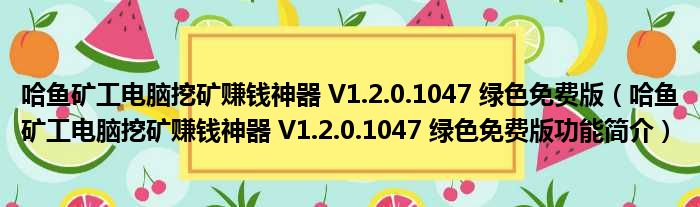 哈鱼矿工电脑挖矿赚钱神器 V1.2.0.1047 绿色免费版(哈鱼矿工电脑挖矿赚钱神器 V1.2.0.1047 绿色免费版功能简介)