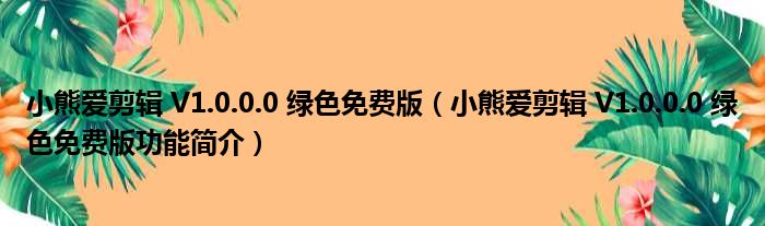 导读 大家好,关于小熊爱剪辑 V1 0 0 0 绿色免费版,小熊爱剪辑 V1 0 0 0 绿色免费版功能简介这个很多人还不知道,小勒来为大家解答以上的问题