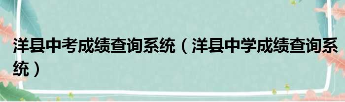 洋县中考成绩查询系统(洋县中学成绩查询系统)