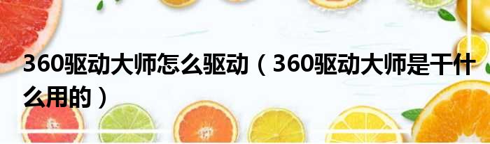 360驱动大师怎么驱动(360驱动大师是干什么用的)
