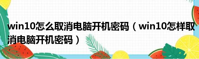 win10怎么取消电脑开机密码(win10怎样取消电脑开机密码)