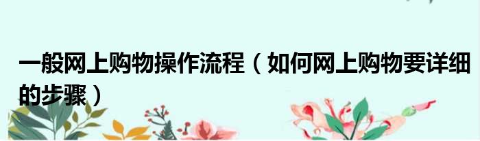 一般网上购物操作流程(如何网上购物要详细的步骤)