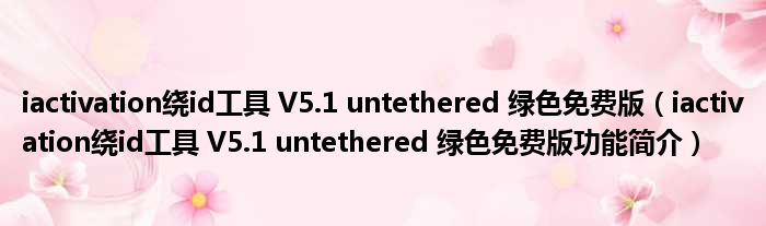 iactivation绕id工具 V5.1 untethered 绿色免费版(iactivation绕id工具 V5.1 untethered 绿色免费版功能简介)